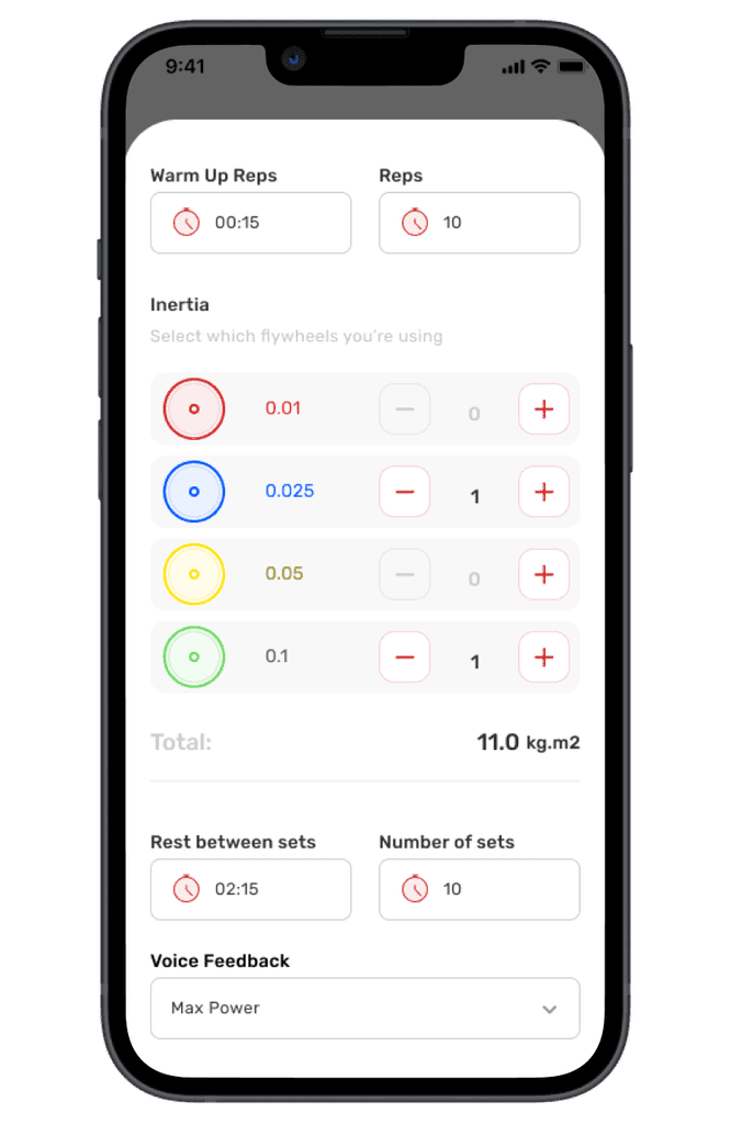 The Exerfly features an in-built rotational sensor providing real-time data at 4,000 points per second. The research-grade sensor provides a range of performance statistics using the inertia of the flywheel, RPM, time and direction to calculate the energy in the Flywheels. The sensor allows athletes and coaches to track real performance data, ensuring athletes are training to their maximum potential and not over- or under-training.